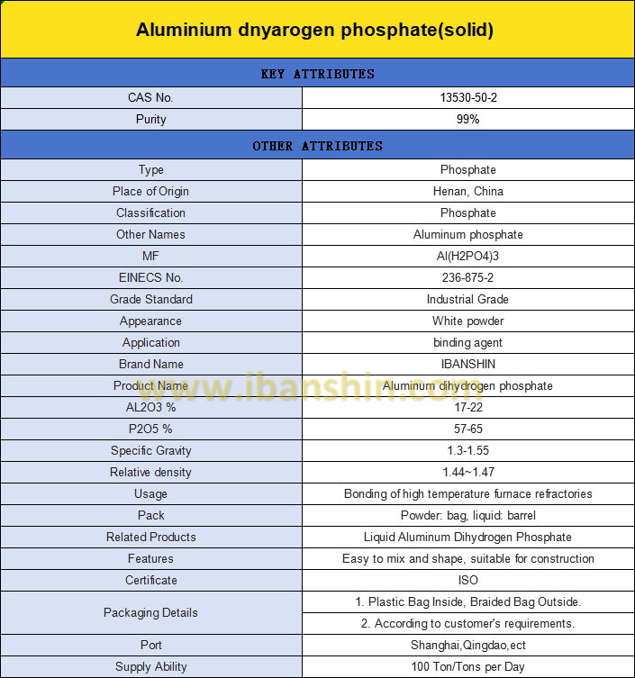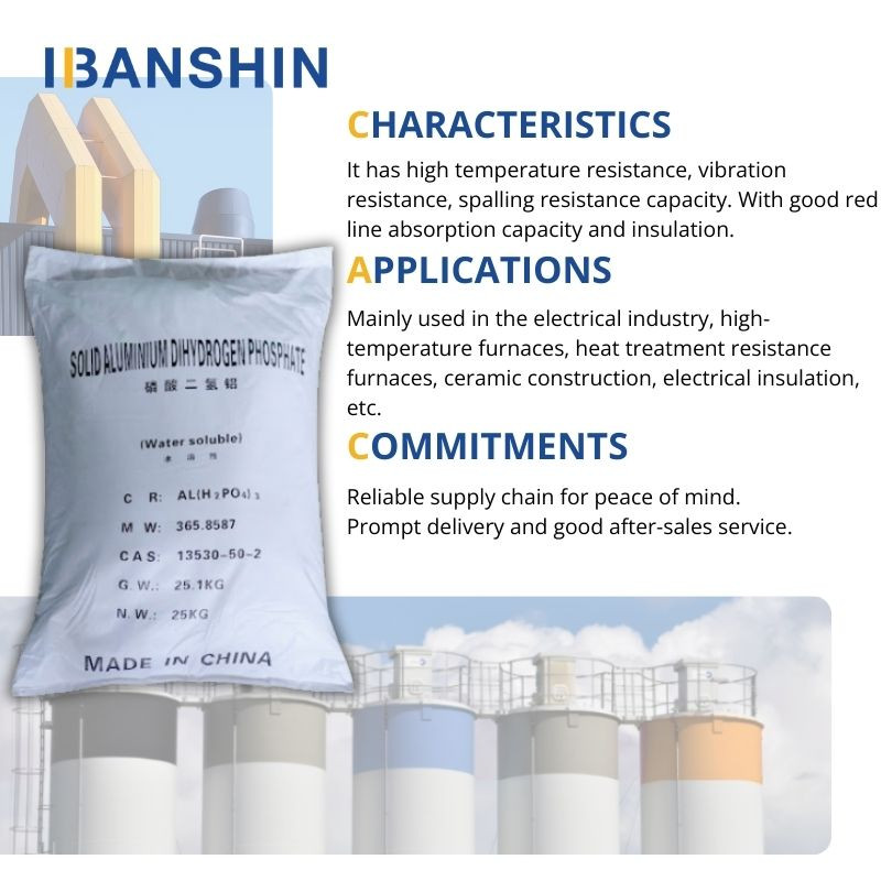 1. We can offer high quality aluminium dihydrogen phosphate, our company is a successful manufacturer and supplier, we devoted ourselves to refractory binder industry many years, we will provide excellent service and competitive price for you, we are expecting become your long-term partner in China.